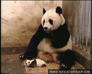 A mamãe panda tava no maior rilax quando o filhotinho tem um pesadelo,se liga no susto.
